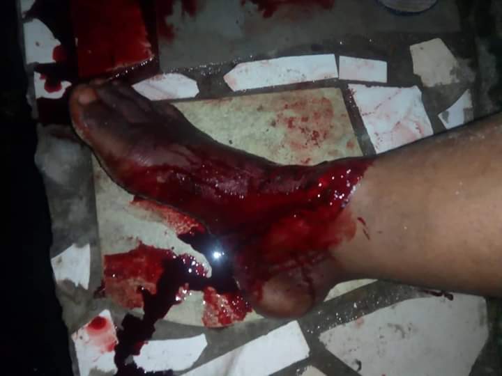 Ayant constaté les faits à mon réveil, une discussion violente déclencha entre nous. Accompagné de ses cousins (son cousin habitant avec nous et ceux du voisinage), j’ai été violemment agressé et à l’aide d’un couteau, il me déchira le pied au niveau de la cheville.