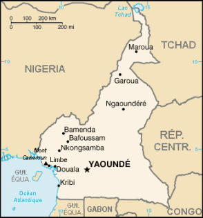 La localisation de Bafoussam dans l’ouest du Cameroun. (Carte de Wikimedia Commons)