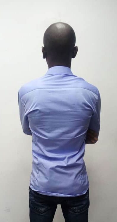 La femme trans camerounaise C., nouvellement sortie de prison, doit souvent s’habiller en homme pour sa sécurité. Pour la même raison, son visage n’est pas montré ici. (Photo de 2HRC)