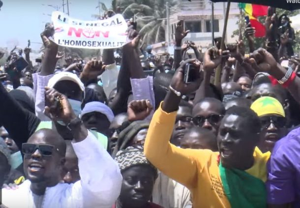 Enfin, Ousmane Sonko, président du principal parti d’opposition à Macky Sall, le PASTEF, était aussi présent au milieu de ce sinistre cortège, pour apporter son soutien aux doléances d’une foule homophobe en délire, le portant aux nues, sous les ovations.