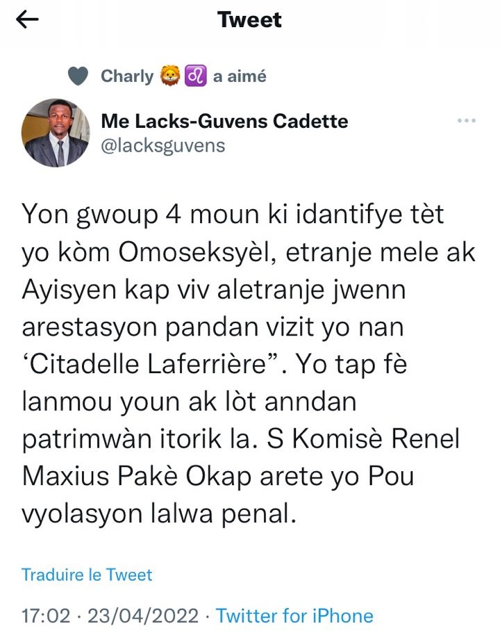 Après la Martinique, avec le communiqué de Kap Caraïbe en date du 1er Avril 2022, puis la Guadeloupe, avec le communiqué du Guadeloupean Interfaith Network, c’est au tour de Haïti d’être touchée par l’homophobie virale et numérique qui sévit en toute impunité sur les réseaux sociaux. Ici, il s’agit en l’occurrence de Twitter qui est une nouvelle fois épinglé. Dans un court communiqué, Héritage pour la Protection des Droits Humains tient à réagir et à ne rien laisser passer.