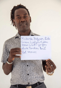 Fritzner : « Je suis Fritzner de Gran Lakou Fòlklorik et je suis le coordinateur de cette organisation bien connue à vocation sociale et culturelle du sud d’Haïti, à Jacmel. En outre, je fais partie de la communauté LGBTI de mon pays ».