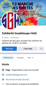 Enfin, nous manifestons également notre inquiétude, car Lydie Siwsanker n’en est pas à sa première tentative de captation de fonds opportuniste. Sur facebook se trouve une page portant le nom de « Solidarité Guadeloupe Haïti », du nom d’une association qui a bel et bien existé, où elle demande des fonds (elle a très récemment changé le descriptif de cette page en introduction) en faveur des victimes LGBT+ du tremblement de terre des Cayes d’août 2021, sans que ses publications ne se rapportent le moins du monde aux victimes ou à Haïti.