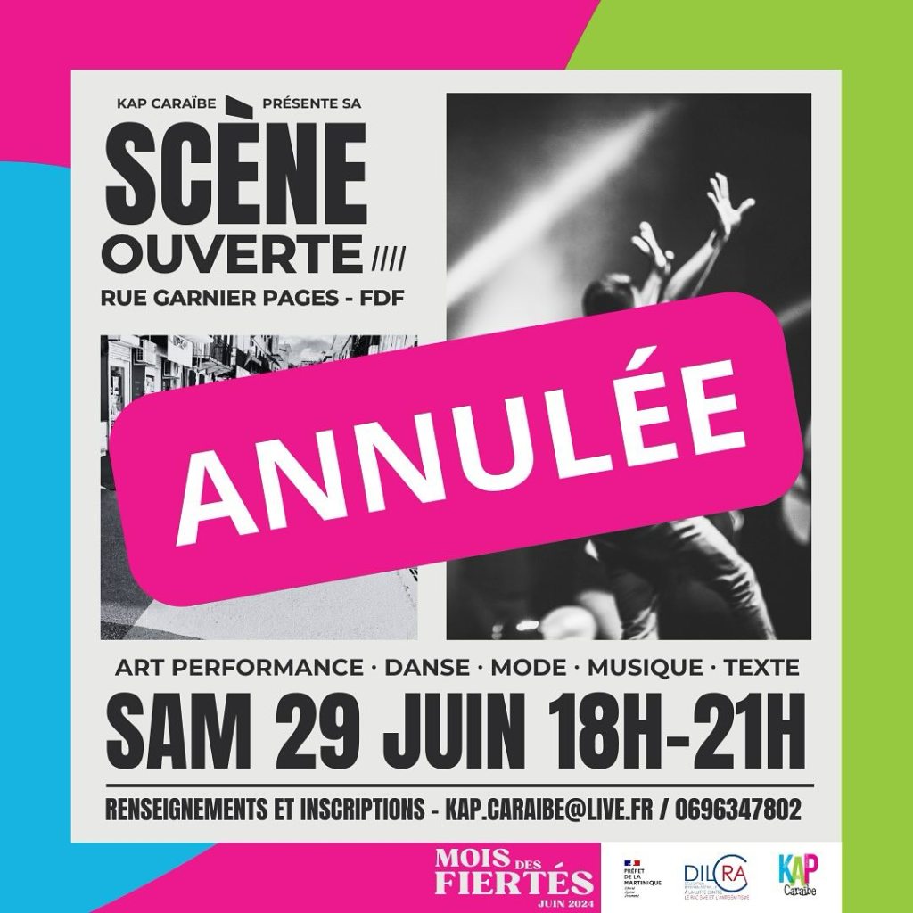 Enfin, le 29 juin, c’est une scène d’expression artistique qui a été annulée suite à diverses manœuvres et contorsions d’une élue foyalaise. Aussi, elle a demandé que Kap Caraïbe s’assure de recueillir l’assentiment des riverains de la rue Garnier Pagès où devait se tenir la prestation des artistes, avant de procéder unilatéralement à un changement de lieu sans prévenir (Kiosque Guesdon), rendant ainsi caduque l’organisation logistique.